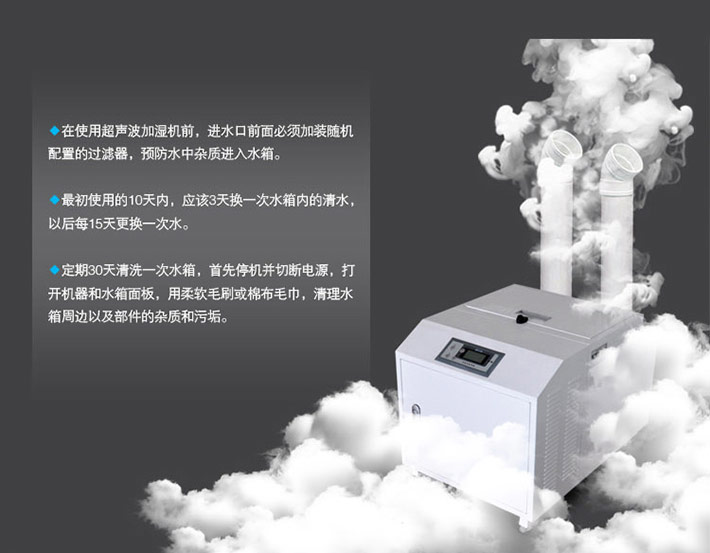 1)紡織行業:增溫增濕、保濕、控溫、消除靜電、降塵、為斷頭、無疵點、不停車、不堆積、不卡車、效率大增、減少飛花、毛糙不平、纖維脆弱等問題。回潮增重增產增收。